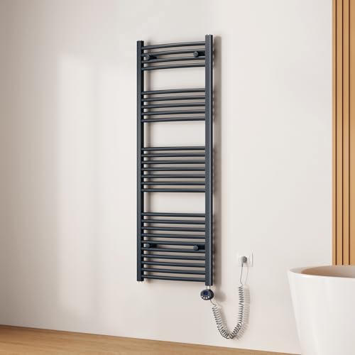 EMKE Sèche-Serviette électrique Salle de Bain 120 x 40 cm, Anthracite,Radiateur courbé avec Thermostat, Chauffe-Serviettes électrique,Support Porte-Serviettes électrique, 500 Watts