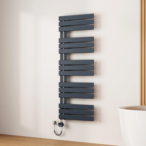 S'AFIELINA Seche Serviette Electrique Anthracite,104.1 x 60 cm, sèche Serviette Électrique avec Thermostat,600W,Connexion Latérale,Tube Plat, seche Serviette Salle de Bain avec Tige Chauffante