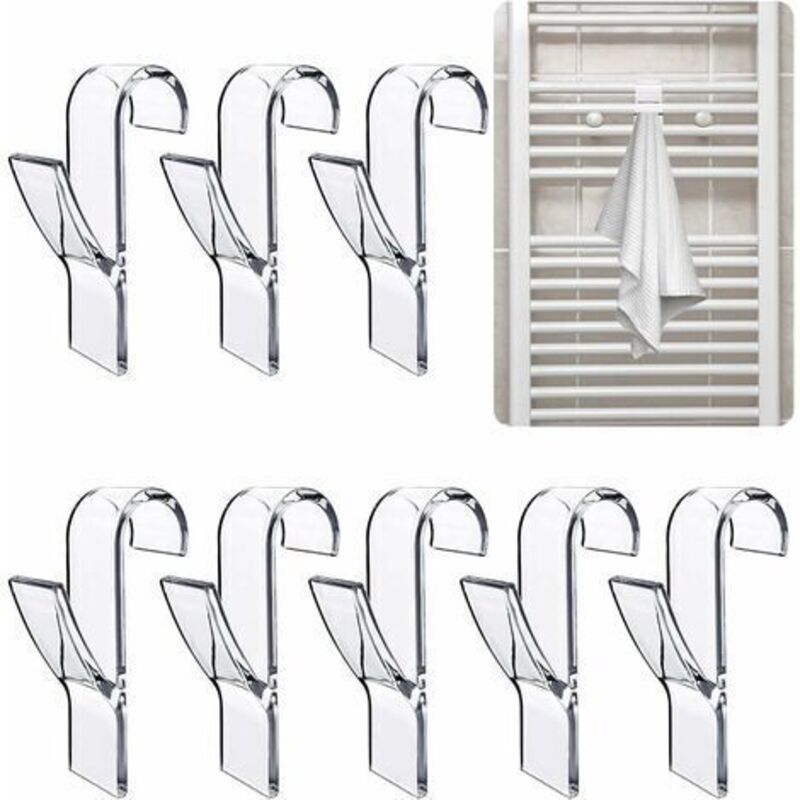 8 Pcs (Transparent) Crochet Radiateur Seche Serviette, Crochet Seche Serviette, Crochet Serviette Salle de Bain, Crochets de Radiateur de Salle Bain,