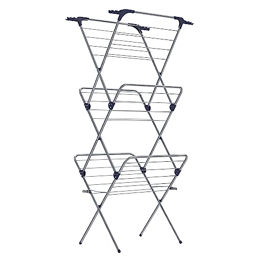 YIYI. SÉCHOIR À LINGE PLIABLE 3 NIVEAUX CHARGE MAXIMALE: 30 KG ETENDOIR À LINGE EN ACIER INOX BLANC.