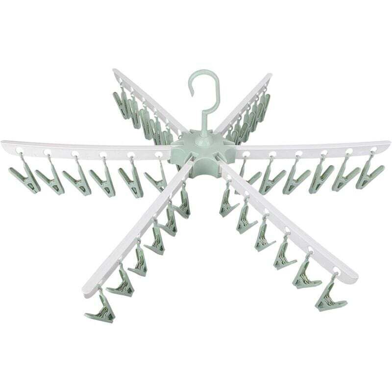 Pliable Etendoir Chaussettes Gants, Sechoir a Linge, 36-Clips Pinces a Linge Cintre Plastique pour Les sous-Vêtements Chaussettes Gants. (Vert)