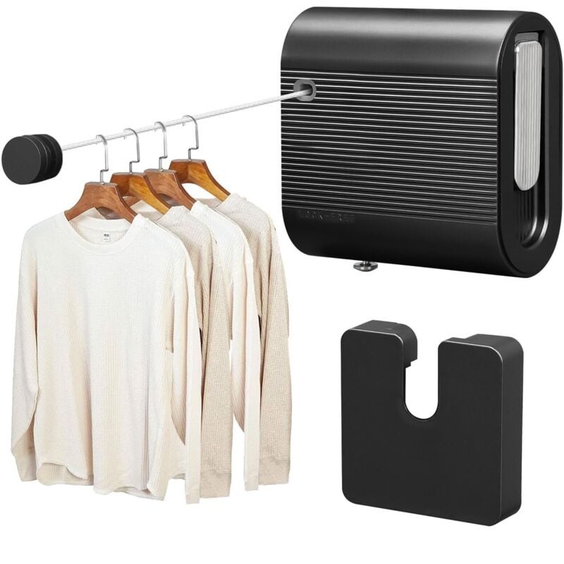 Corde à Linge Rétractable 4,2m - Sechoir a Linge Mural - Étendoir Robuste Intérieur/Extérieur 20kg, pour Salle de Bain, Balcon, Buanderie (Noir