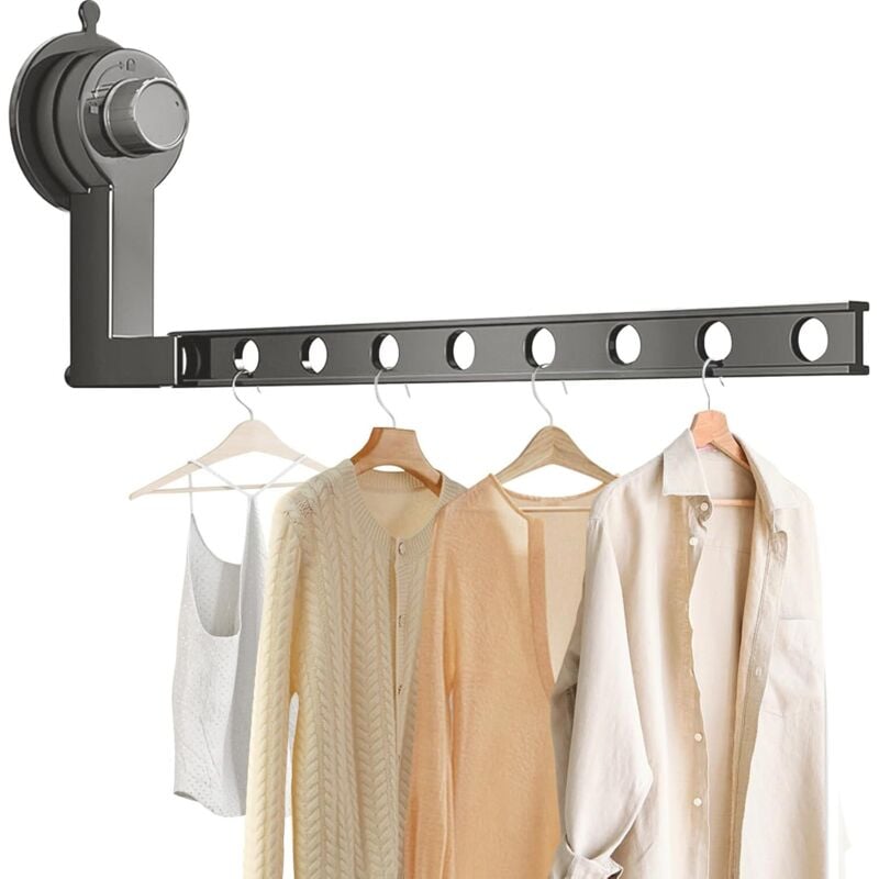Étendoir à Vêtements Rétractable, Sechoir a Linge Pliable Mural Étendoir à Vêtements à Ventouse Étendoir à Linge en Alliage D'aluminium, Rotatif à