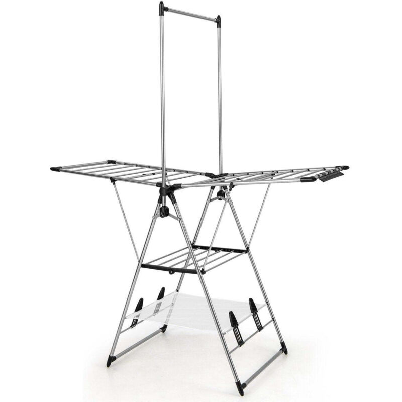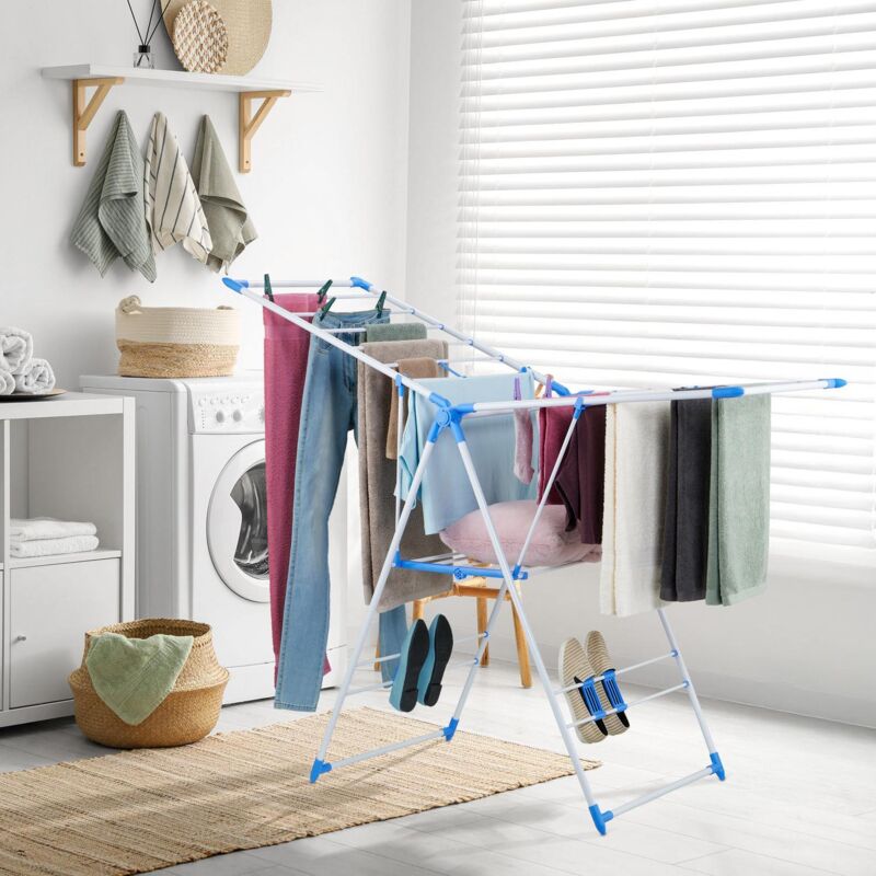Sechoir a linge pliable avec 2 ailes et porte chaussures