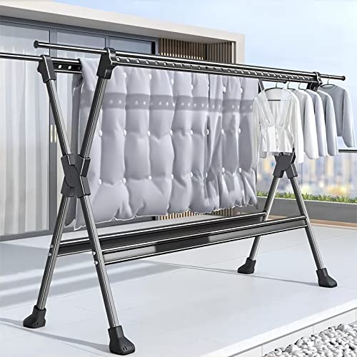TapferBahn Support à Linge Pliable,Grande Capacité Sechoir A Linge Balcon,Etendoir Drap Extensible,Support à Linge en Acier Inoxydable Robuste,pour Sécher Vêtements,Literie,Pantalons