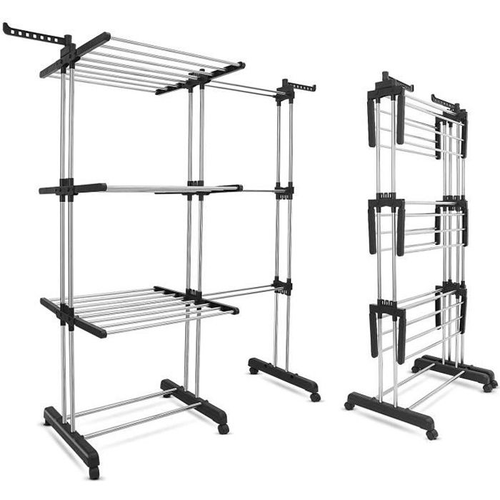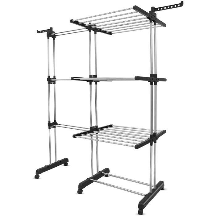 Johgee Étendoir Linge Intérieur sur 3 Niveau Séchoir à Linge Extensible Réglable Tancarville Grand Capacité 178 x 170 x 50cm[28]