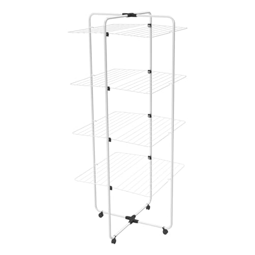 Relaxdays étendoir lessive, Pliable, Extensible, 11 tiges, séchoir Tour Peu encombrant, Métal, Blanc