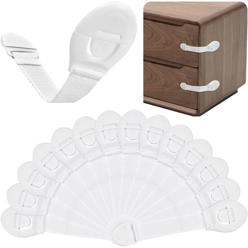 BEBUSINGOTO [Lot de 10] Sécurité Enfant Portes de Placard,Canwn Bande Souple Sécurité Tiroir Bébé Serrures de Sécurité avec Résistant Adhésif pour
