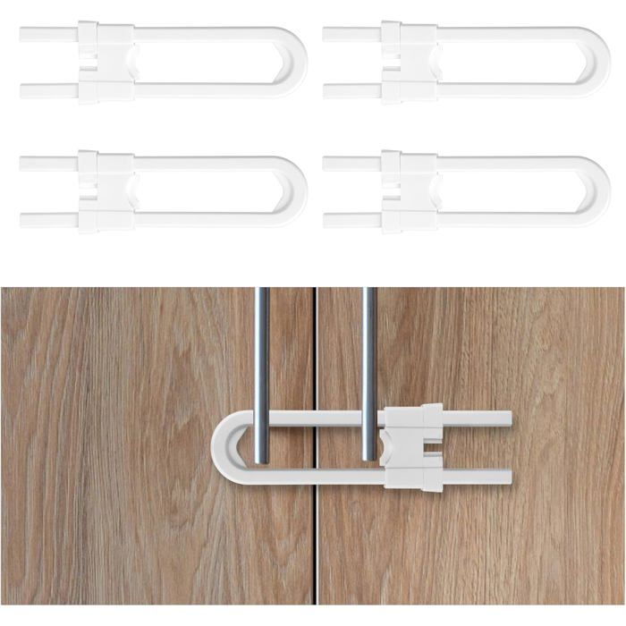Securite Placard Enfant4 Pack Bloc Placard Bebe -Sécurité Enfants en U Sécurité de Porte Enfant Conviennent