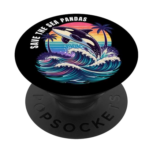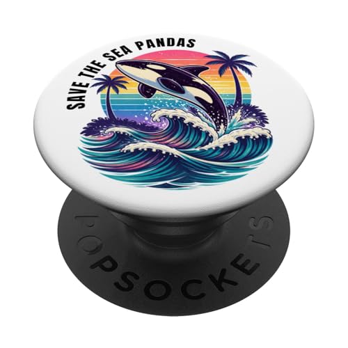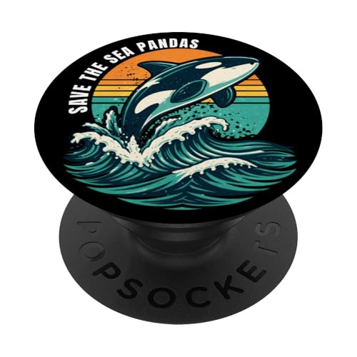 Save The Sea Pandas Orca Whale Rétro Vintage Ocean Wildlife PopSockets PopGrip Adhésif