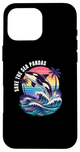 Save The Sea Pandas Orca Whale Rétro Vintage Ocean Wildlife Coque pour iPhone 16 Pro Max