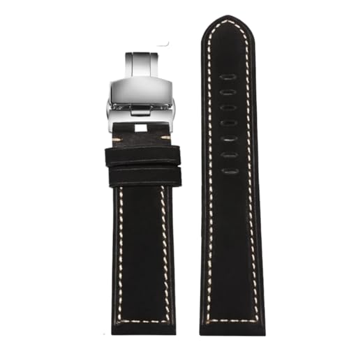 NASUNJIA Bracelet de montre en cuir rouge tendance for montre connectée Panerai, Seiko, Tissot, style vintage(Light Black B,24mm)