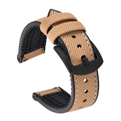 LOPAKACTAG Bracelet en caoutchouc FKM for montre connectée Omega Seiko Sport Vintage 18-20-22-24 mm(Black Khaki-White1,22mm)