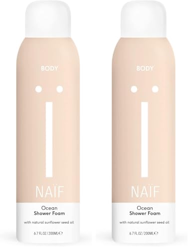 Naïf - Mousse De Douche Naturelle, senteur poire & sel marin - 200ML, Mousse de douche pour le corps parfumée aux sels marins et à la poire, Végan, Formule sans plastique, Bioplastique (Lot de 2)