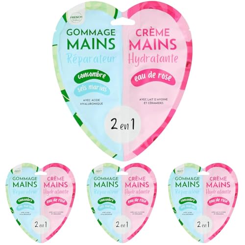Feel Natural - Duo Gommage - Crème Hydratante Mains - Exfoliant - Nettoyant - Purifiant - Soin Intensif Complet Peau - Concombre et Sel Marin - 2x15ml (30ml) (Lot de 4)