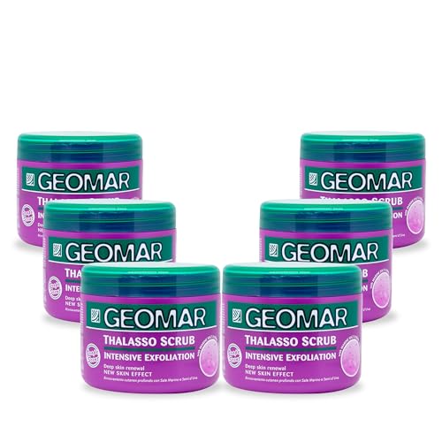 GEOMAR | Thalasso Gommage Intensif Exfoliant, Renouvellement cutané profond, Effet peau Nouvelle, Avec Sel Marin, Graines de Raisin et Oligo-éléments de la Mer Morte, Made in Italy, 6 x 600 g