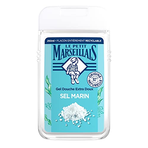 Le Petit Marseillais, Gel Douche Extra Doux Sel Marin (flacon de 250 ml) – 92 % d'ingrédients d'origine naturelle et pH neutre pour la peau – Flacon entièrement recyclable