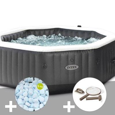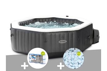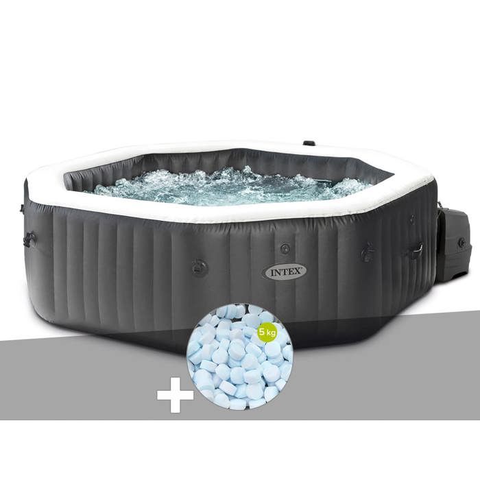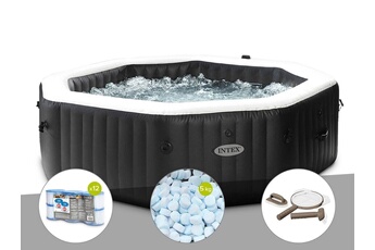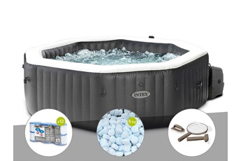 Kit spa gonflable intex purespa carbone octogonal bulles et jets 6 places + 5 kg de sel + aspirateur