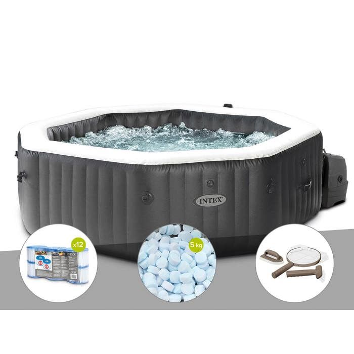 Kit spa gonflable intex purespa carbone octogonal bulles et jets 4 places + 5 kg de sel + aspirateur