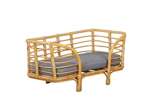 BAÏTA Panier rectangulaire Selene pour Chien/Chat en rotin Coussin Inclus, Taille L/XL, Couchage pour Animal de Compagnie en rotin