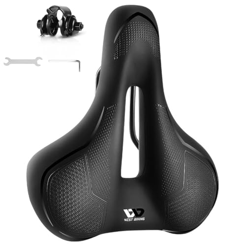Siège de vélo confortable – Selle de vélo ergonomique | Siège large épais | Selle de vélo absorbant les chocs pour les longues distances, le VTT et les trajets quotidiens