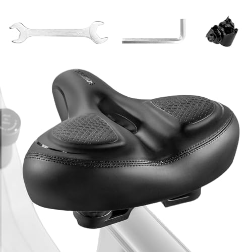 Selle de Velo Ultra Confortable, Extra Large, Rembourrage Doux, Selle Confort Bike, Homme et Femme Selle de Vélo Ergonomique, pour VTT Vélo de Ville Ebike Vélo Stationnaire Vélo D'extérieur (Noir)