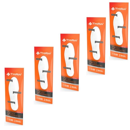 THAW Lot de 5 paires de semelles chauffantes jetables - Jusqu'à 5 heures de chaleur - Chauffe-pieds activés par l'air pour chaussures et bottes - Inodore, sûr et facile à utiliser pour le travail, les