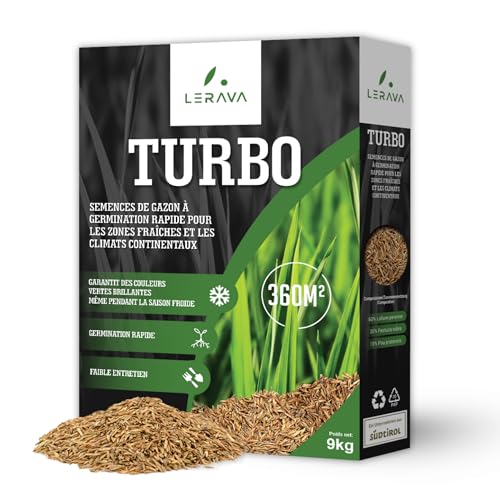 LERAVA® Turbo gazon à semer pousse rapide - (360m²) - pelouse à semer pour ombre et zones fraîches - 98% pureté - pelouse rustique vert vif - semence gazon résistante