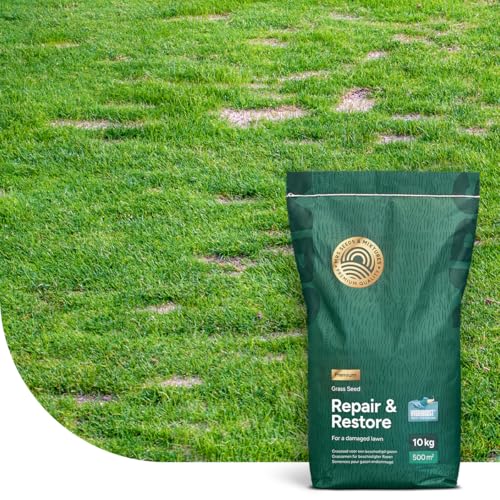 Repair & Restore : Semence gazon réparation - 10 kg pour 500 m² - Germination ultra-rapide - Germination à partir de 6 °C seulement - Prévenir les mauvaises herbes - Avec Revêtement Hydroboost™
