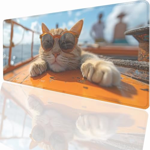 Tapis de Souris Gaming XXL Grand Mousepad 700 x 300 x 3 mm, Grand Tapis de Bureau sous Main avec Base Caoutchouc antidérapante pour PC Gamer, Améliore la précision et la Vitesse Animal Chat LMDT10557