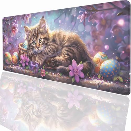 Tapis de Souris Gaming XXL Grand Mousepad 700 x 300 x 3 mm, Grand Tapis de Bureau sous Main avec Base Caoutchouc antidérapante pour PC Gamer, Améliore la précision et la Vitesse Animal Chat LMDT9951