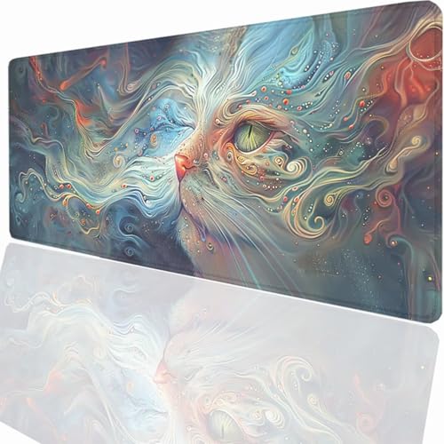 Tapis de Souris de Jeu, 700 x 300 x 3 mm XXL Tapis Souris Gaming Grand, Antidérapant Étanche, Extended Long Clavier Mouse Pad, Accessoire Bureau, pour Gamer, Ordinateur, PC Abstrait Chat LMDT6810