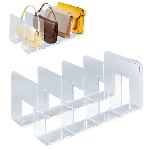BlyeMichdi Rangement de Sac à Main pour Placard, 4 Séparateur d'Etagère pour Placard, Support De Rangement De Sac Transparent, Séparateur de Sac à Main Transparent à 4 Fentes, 32x14.4x13 cm