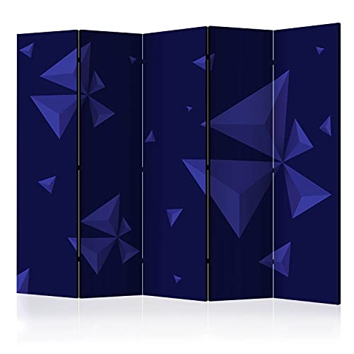 decomonkey - Paravent décoratif intérieur Géométrique 225x172 cm - Cloison de séparation imprimée sur Toile - Paravent Original en Bois - Violet Bleu Blanc - Fond de Triangle géométrique Abstrait