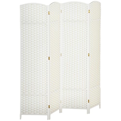 HOMCOM Paravent 4 pièces, 160 x 170 cm, Pliable, cloison de séparation en Bois de pin, Brise-Vue, séparateur de pièce, cloison pour Salon, Blanc