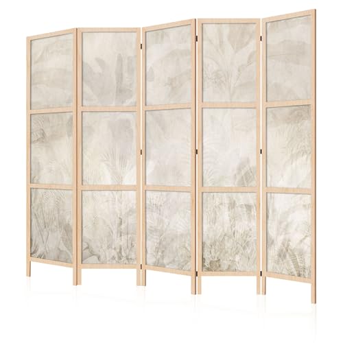 LUMASOUL Paravent Intérieur 5 Panneaux Recto - Verso Pliable - Separateur de Pieces - Cloison de Separation de Chambre pour Chambre à Coucher, Salle de séjour - 225x172 cm Feuilles