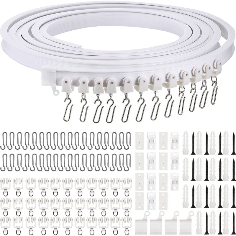 Rail de Rideau Plafond Kit de Rail Rideau Flexible Pliable avec Crochets en Métal pour Separation de Piece Chambre Balcon Bureau Hôtel (Blanc, 5 m)