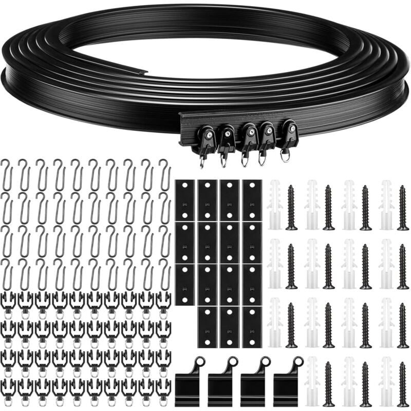 Jetec Rail de Rideau Plafond Kit de Rail Rideau Flexible Pliable avec Crochets en Métal pour Separation de Piece Chambre Balcon Bureau Hôtel (Noir, 5 m)