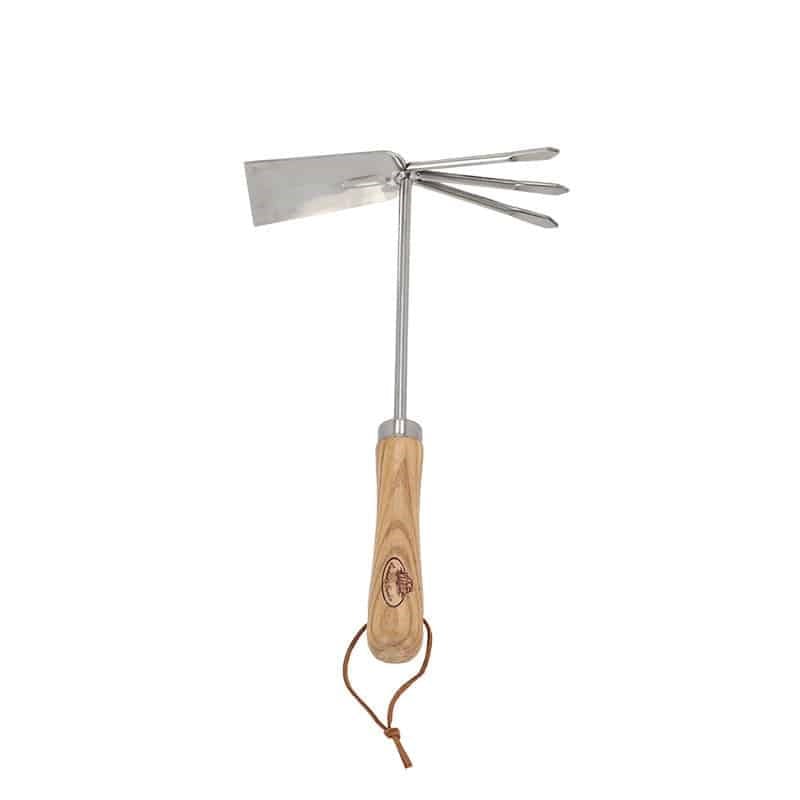 Leborgne, Petite Serfouette Panne et Fourche Manche Bois, Binette à main pour jardinage, Sarcloir de jardin avec 3 griffes, Outil de jardin multifonctions