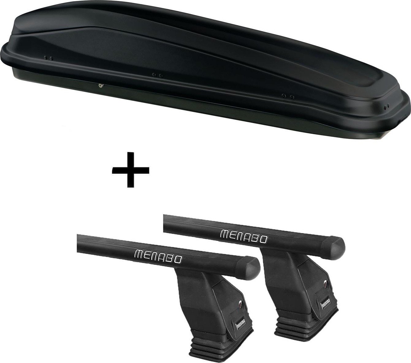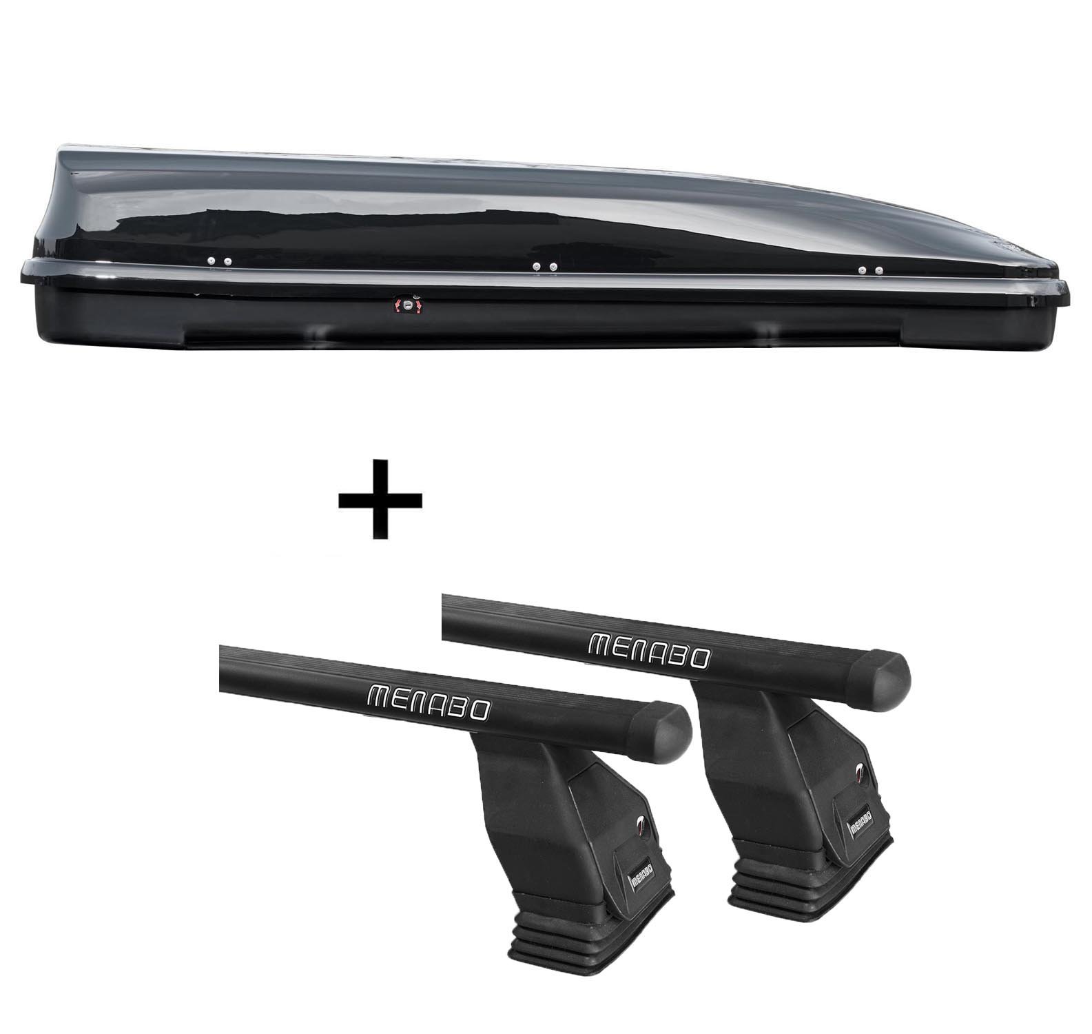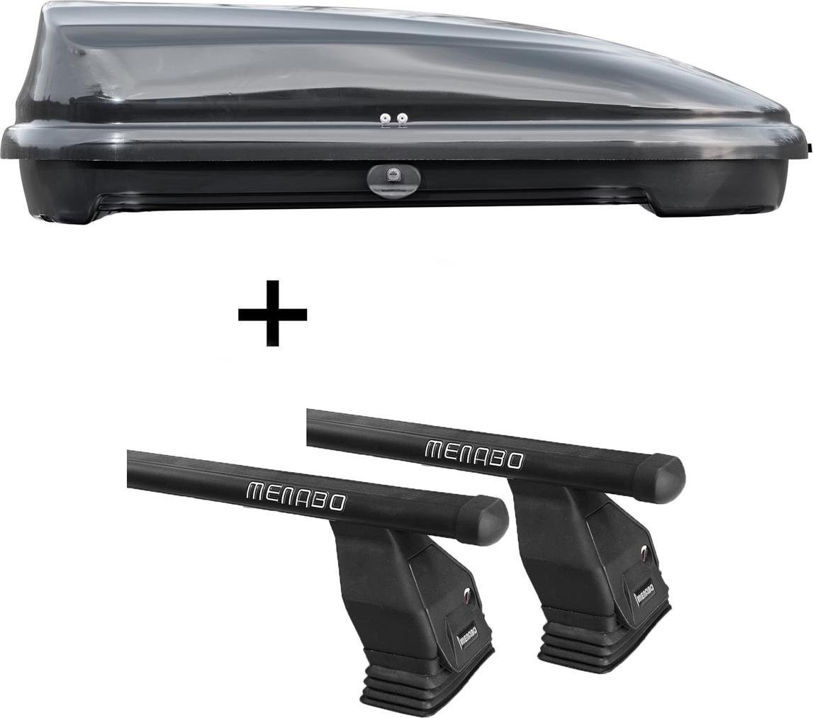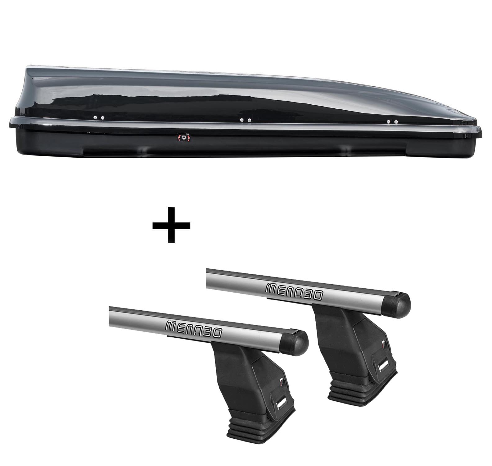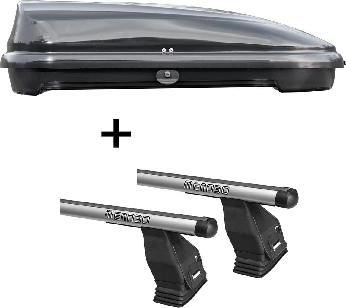 Coffre de toit JUEASY300 300 litres noir + barres de toit Menabo Tema en acier compatibles avec Bmw Serie 3 (G20) (4 portes) à partir de 19 ans