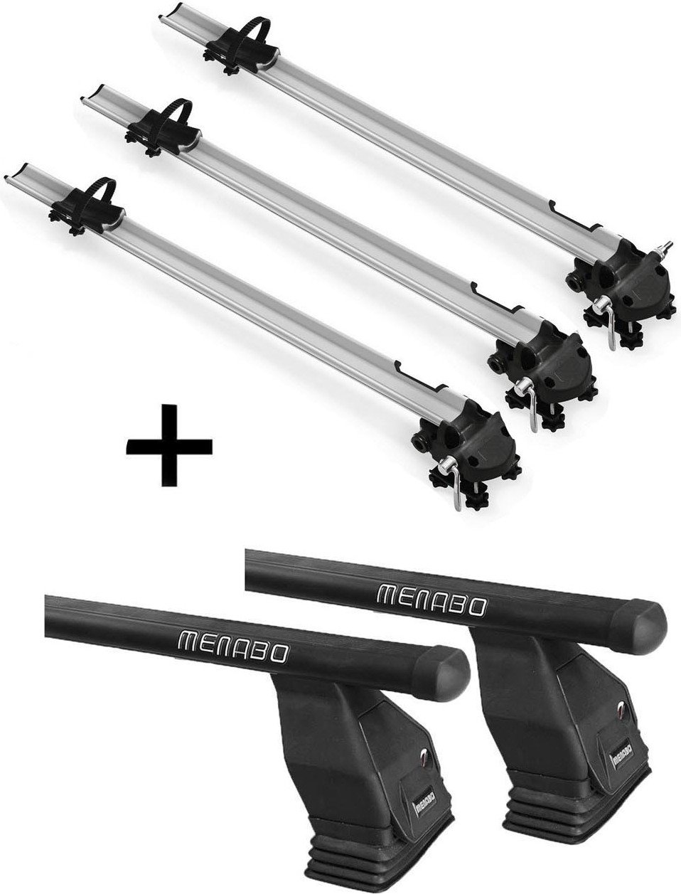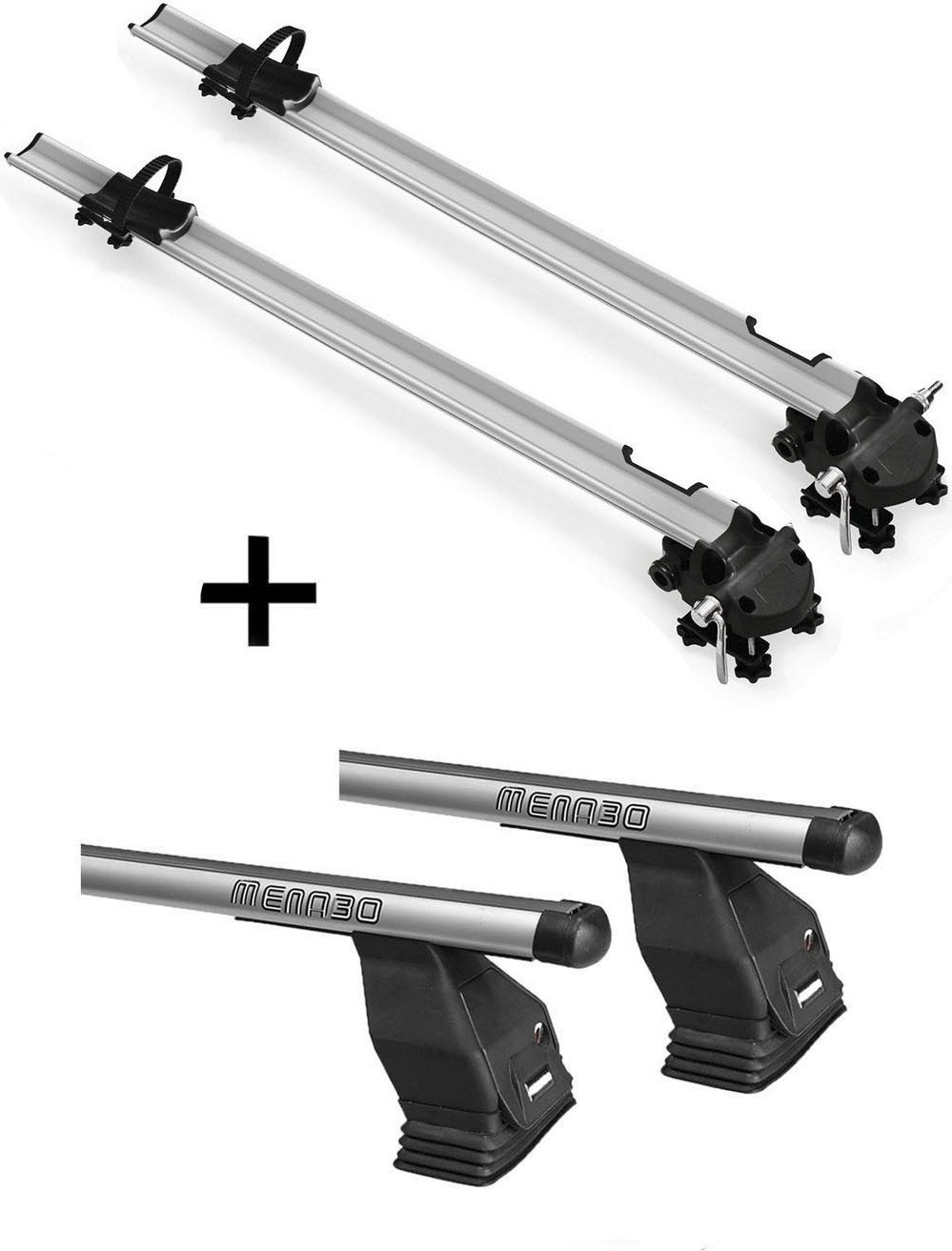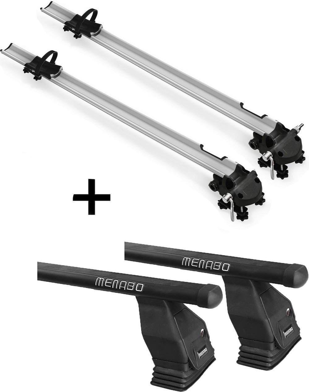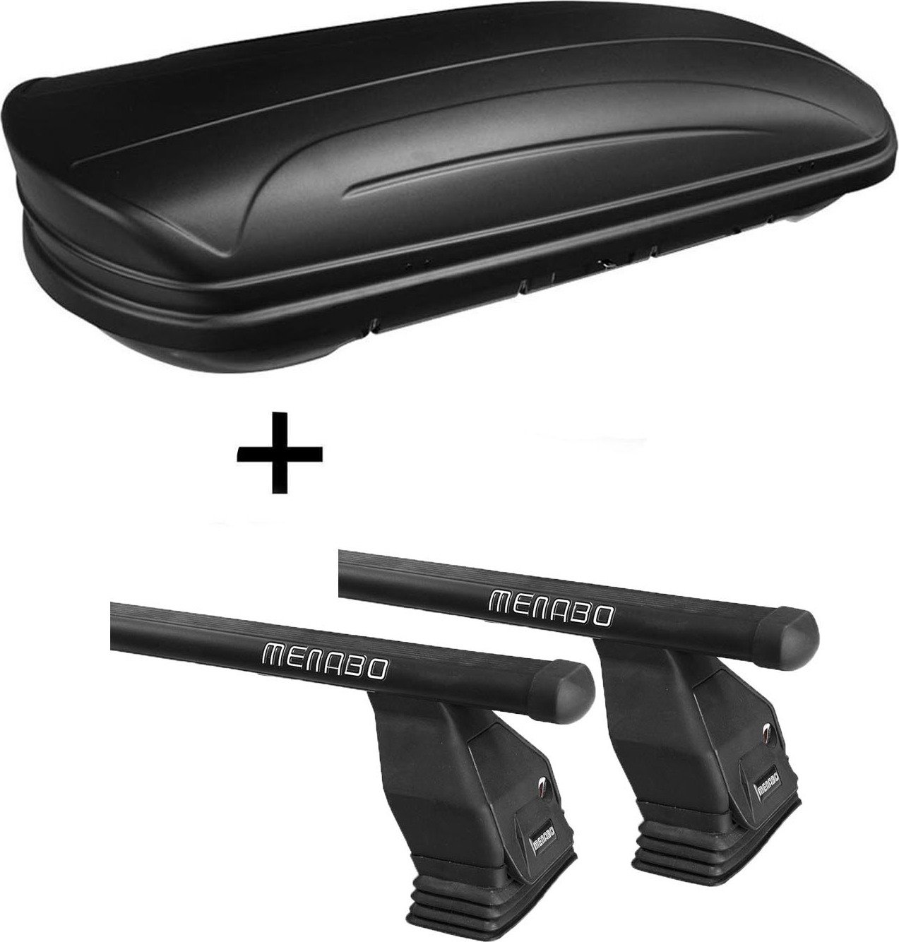 Coffre de toit JUEASY300 300 litres noir + barres de toit Menabo Tema en acier compatibles avec Bmw Serie 3 (G20) (4 portes) à partir de 19 ans