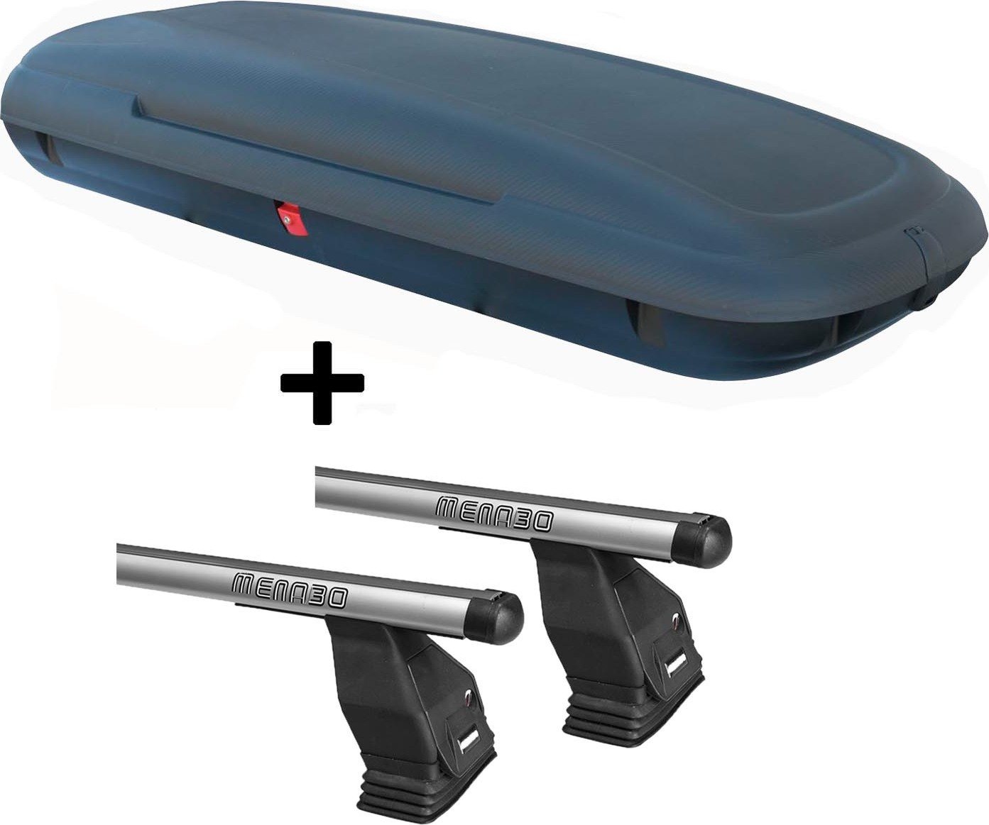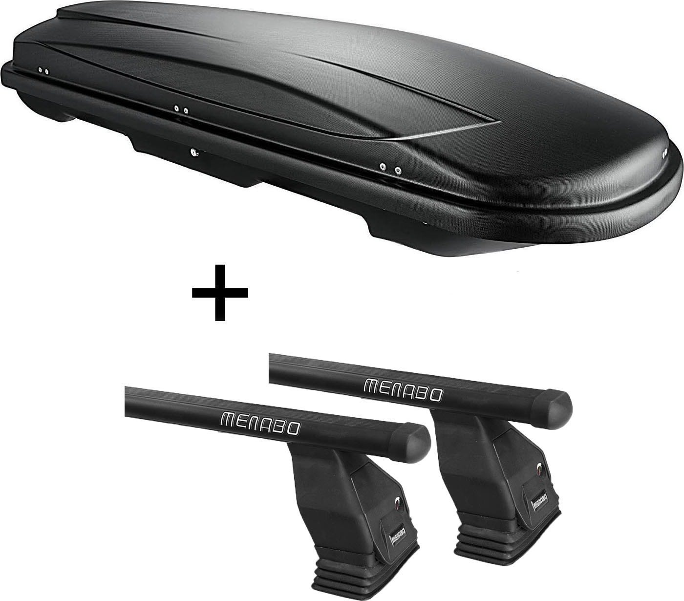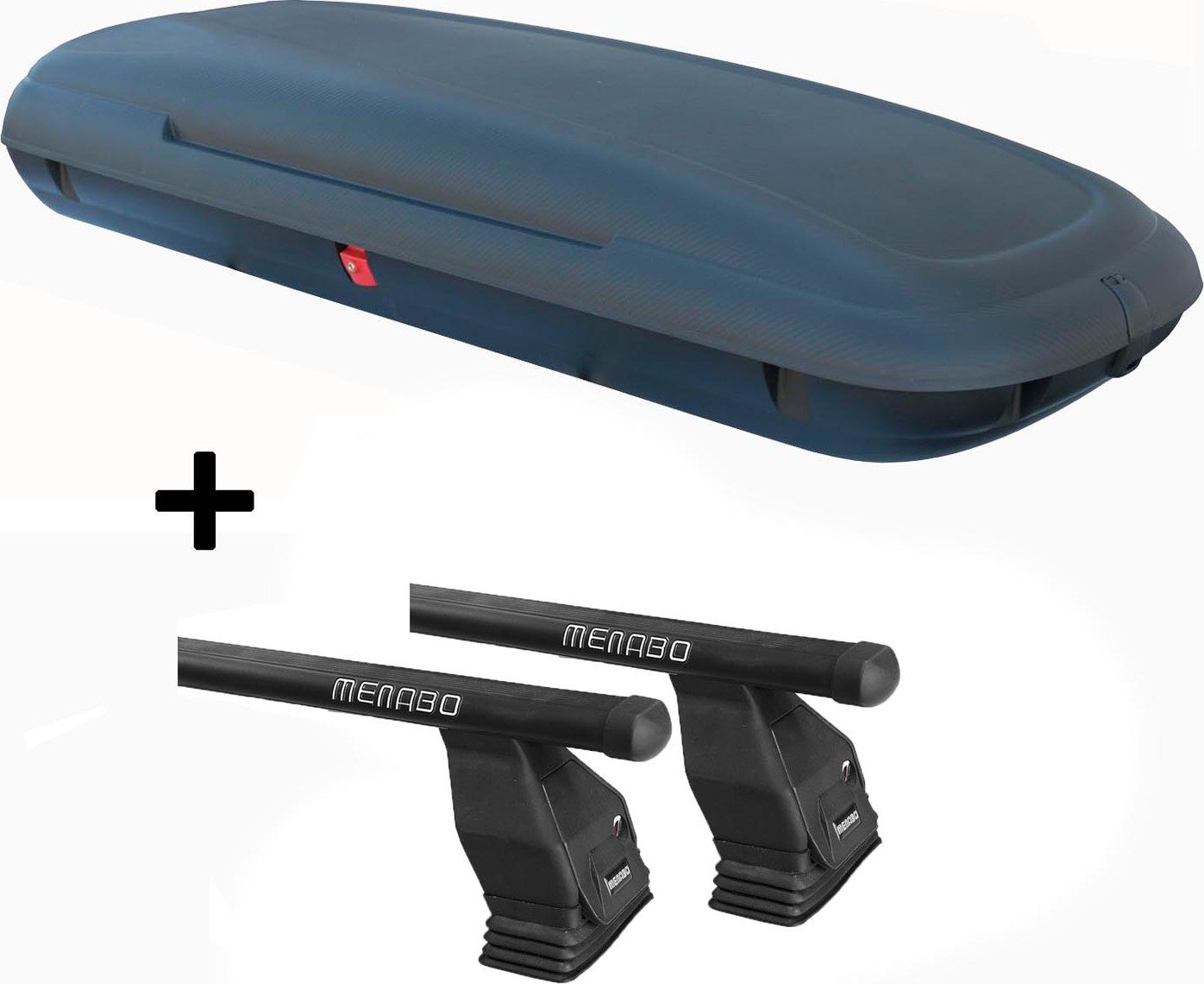 Coffre de toit VDPCA480 480Ltr carbonlook + barres de toit alu Menabo Tema compatible avec Bmw Serie 3 (G20) (4 portes) à partir de 19