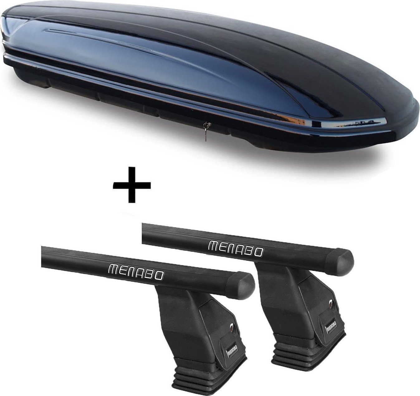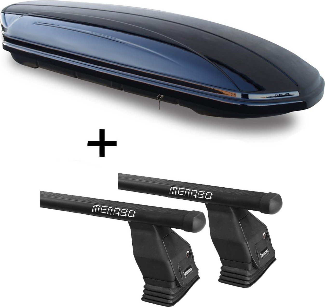 Coffre de toit MAA460 460Ltr noir brillant + barres de toit Menabo Tema en acier compatibles avec BMW Serie 3 (G20) (4 portes) à partir de 19