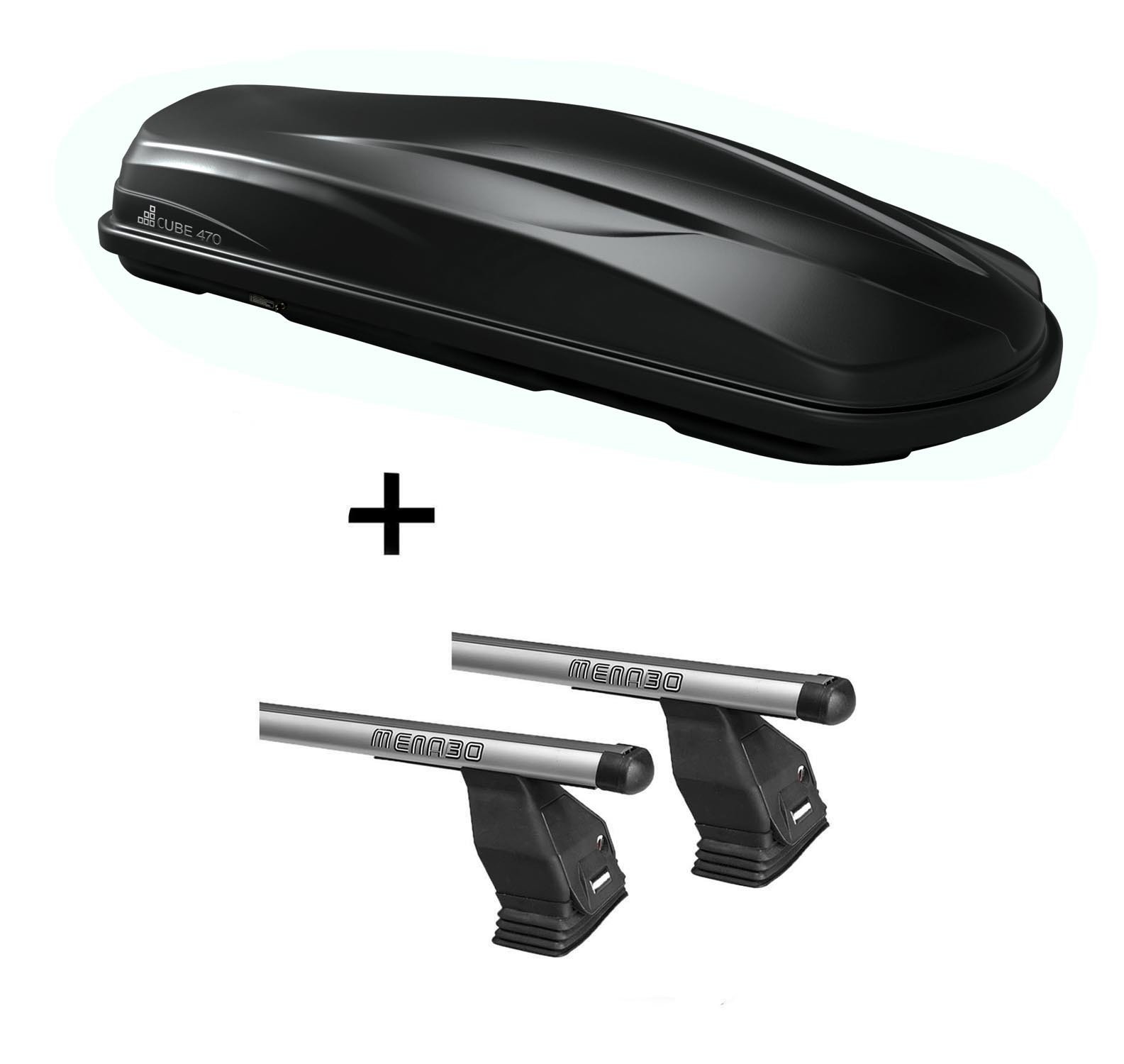 Coffre de toit/coffre à bagages CUBE470 + barres de toit Menabo Tema en acier compatibles avec Bmw Serie 3 (G20) (4 portes) à partir de 19 ans