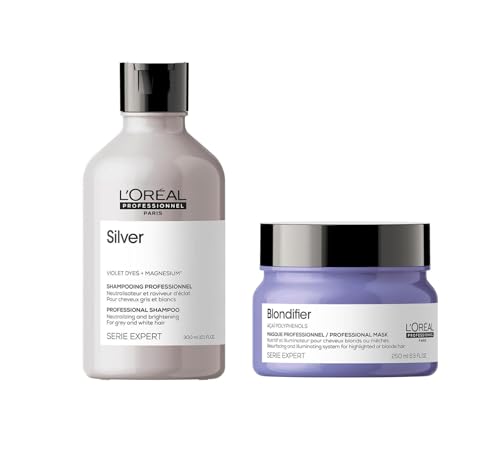 L'Oréal Professionnel | Shampoing Neutralisant & Masque Nutritif pour Cheveux Gris ou Blancs, Silver & Blondifier, SERIE EXPERT, 300 ml + 250 ml