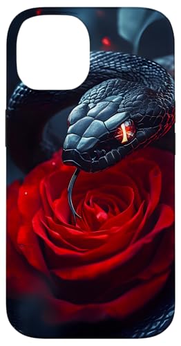 Serpent noir rose rouge Coque pour iPhone 14