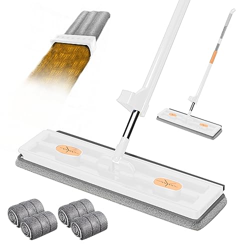 Masthome Serpillère Balai, Serpillère Microfibre Balais à Plat avec 4 Réutilisables,Balai Plat avec Manche INOX, Pliable Balais pour Nettoyage de Sol-Rod