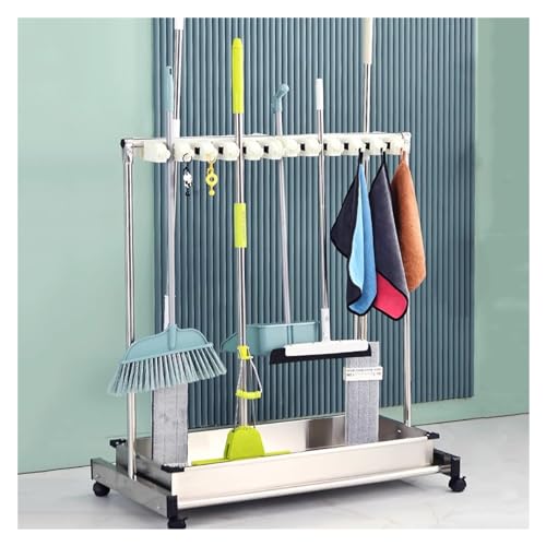 XUCAJING Support Pour Balai Et Serpillère, Organiseur de Rangement Mobile Pour Balais Avec Roulettes Universelles, Support de Rangement En Acier Inoxydable Pour Cuisines Commerciales, Restaurants, Gar