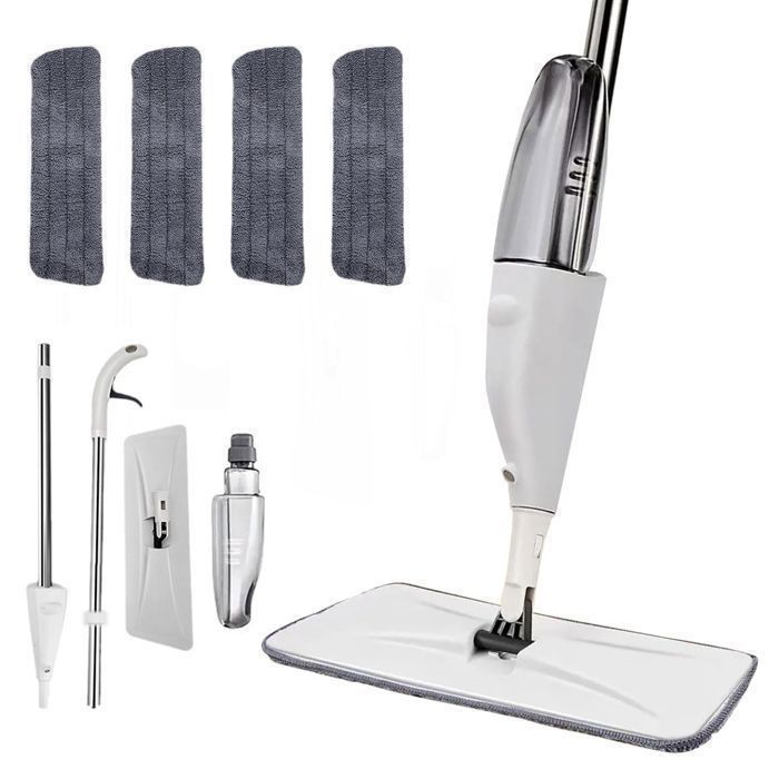 Balais Serpillère VaporisateurSpray Mop Microfibre Balai Pulvérisateur avec 6 tampons en Microfibre et1*Porte Balai pour la Maison