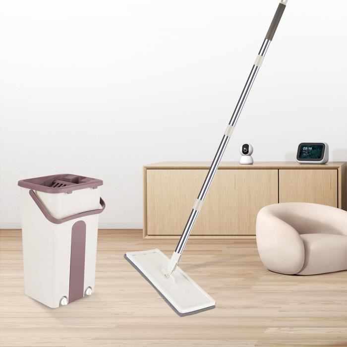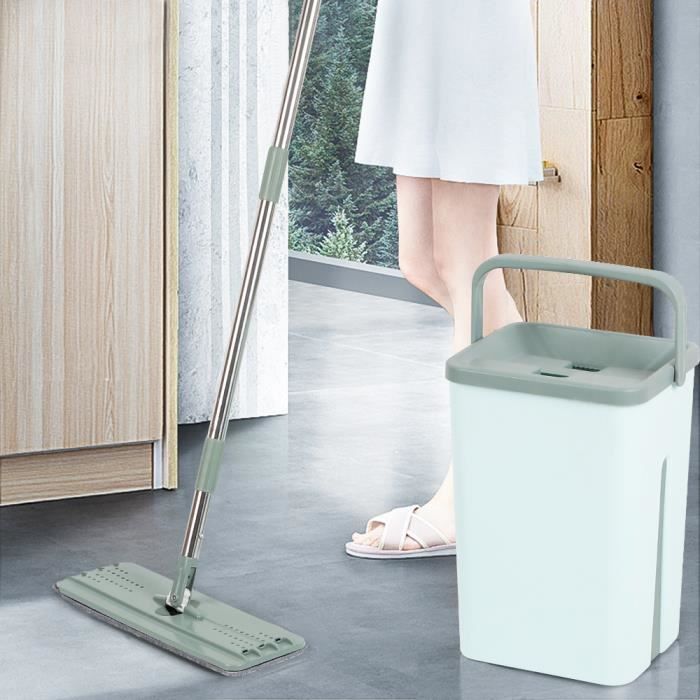Set Clean Mop Serpillière, Seau et Balai-essoreur Simples à Utiliser, balais serpillère avec mécanisme d'essorage intégré,pour Nettoyage Sol
